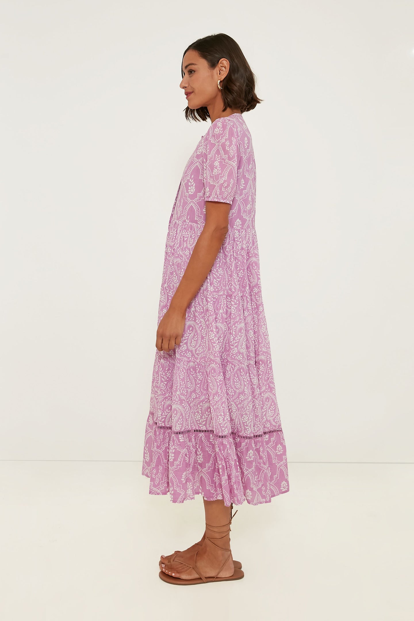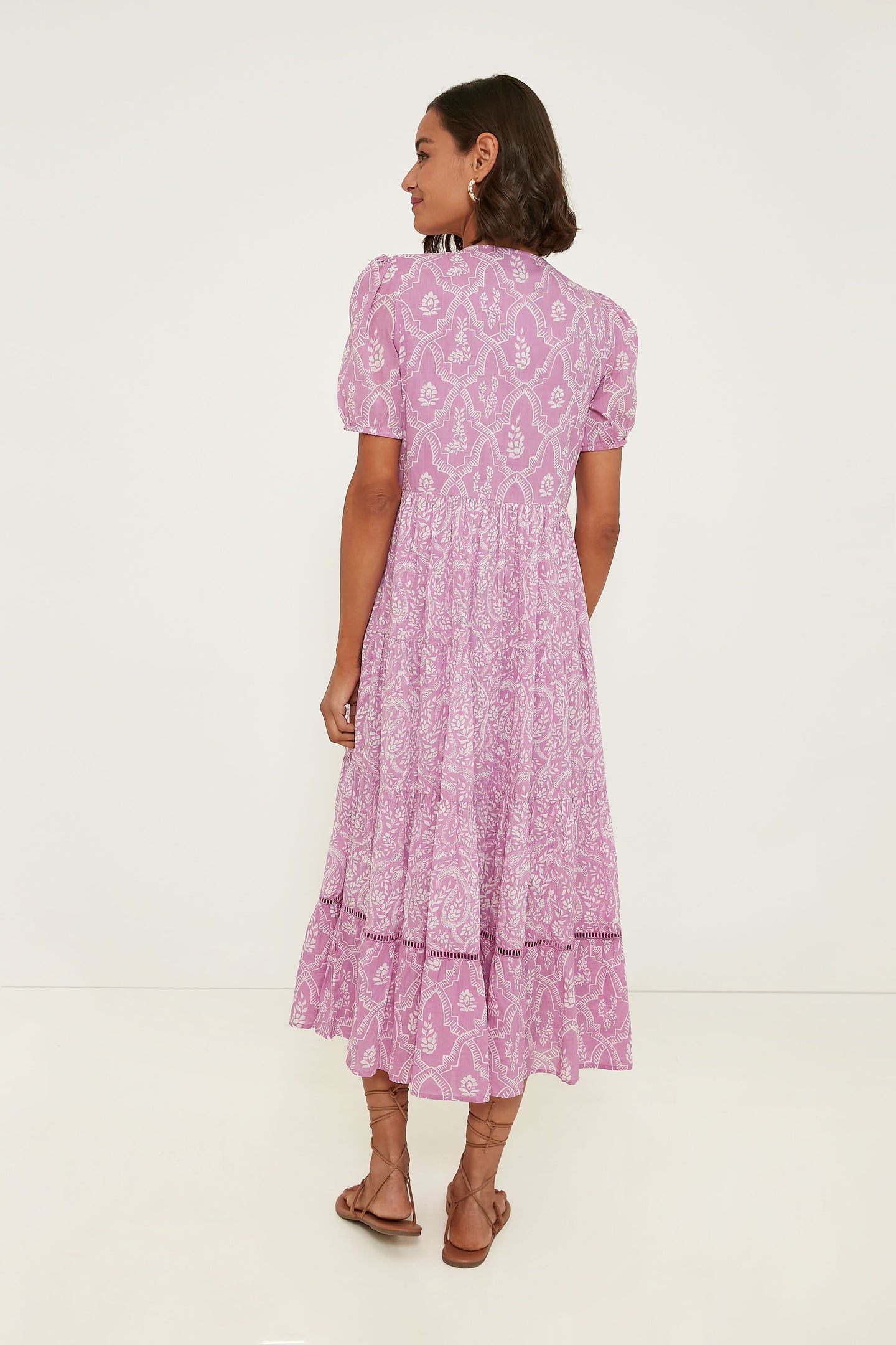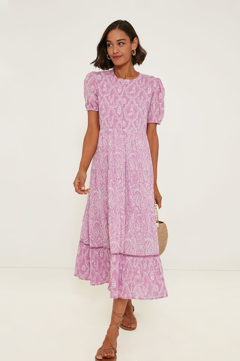Begging to be twirled, the Lilac Lorraine Daphne Midi Dress is ready for day to night fun! Designed with subtle puff sleeves, a covered front placket, and a gorgeously tiered skirt that makes us want to prance around, we can't wait to show off this stunner. From garden parties to Friday night celebrations, we are pairing this with strappy sandals and gold accessories for effortless and breezy style.