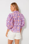 Sweet and summery, the Lovebird Lilac Blouse makes any outfit feel easy and breezy. This gorgeous pattern printed with flora and fauna is complimented by a unique color combination of bright violets and deep oranges, creating a style that is completely unique. Add ruffle details, a button down front placket, and elbow-length balloon sleeves for some volume, and you've got a stellar style on your hands. Pair with white denim and a tonal bag for a fresh look perfect for brunch and retail therapy with your girls!