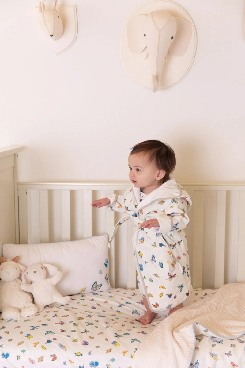 Dreamy prints meet soft, cooling fabric with the Madame Butterfly Crib Sheets. Featuring an adorable print, these sheets are made from soft, breathable organic cotton fabric to ensure your baby sleeps comfortably through the night and at naptime. Perfect for any nursery decor, they add a charming and serene aesthetic to your baby's space.