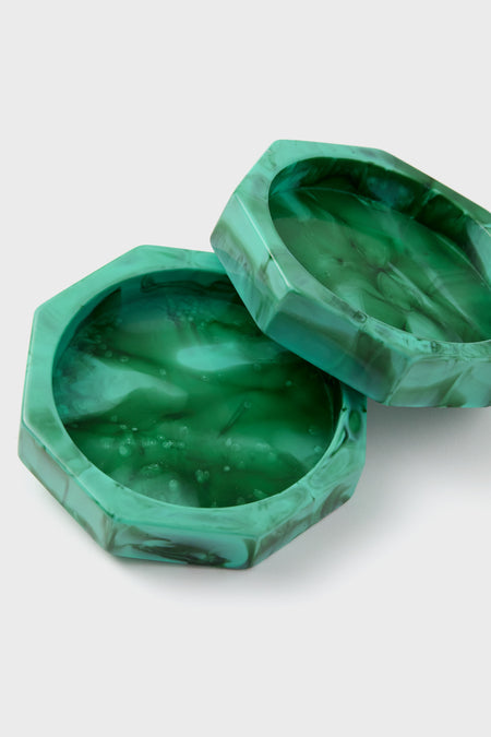We are loving these vibrant wine coasters. Made from a smooth resin in a malachite colorway, these add a playful touch to your living room table or dining room.