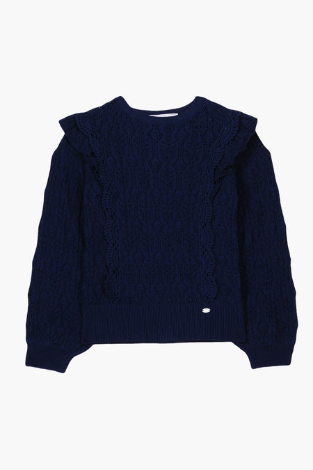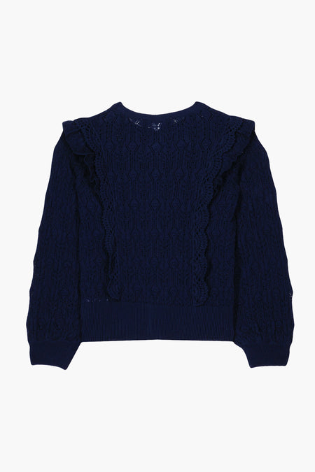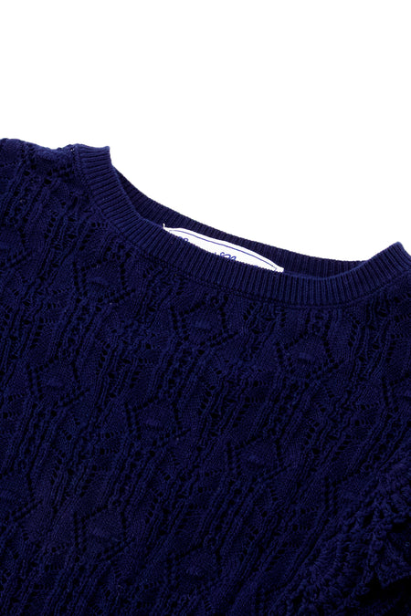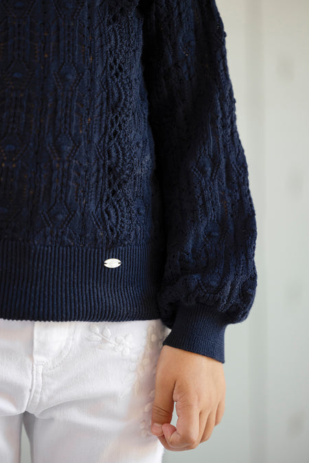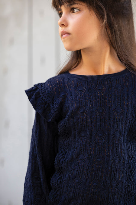 Soft and comfortable, the Marine Pullover is an essential of this season. The ruffles and puffy sleeves adds texture and sophistication where as the timeless navy colorway will agree with all the outfits of your little girl. Super versatile, this adorable sweater is ideal for all occasions: spring walks, summer evenings, weddings, baptisms, birthdays and more!