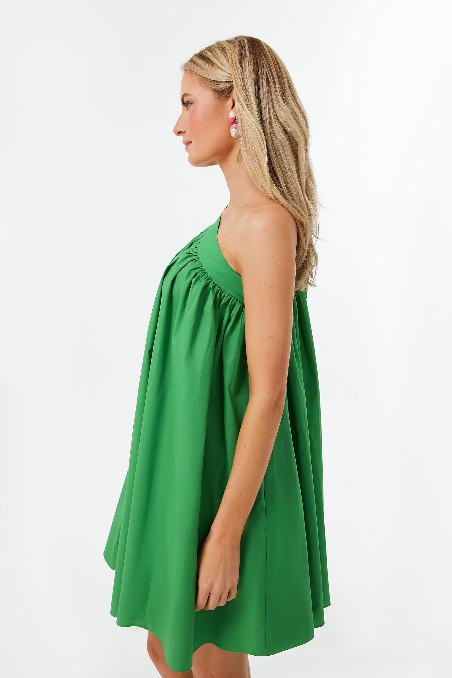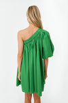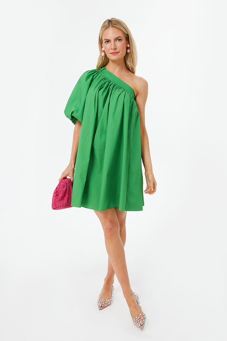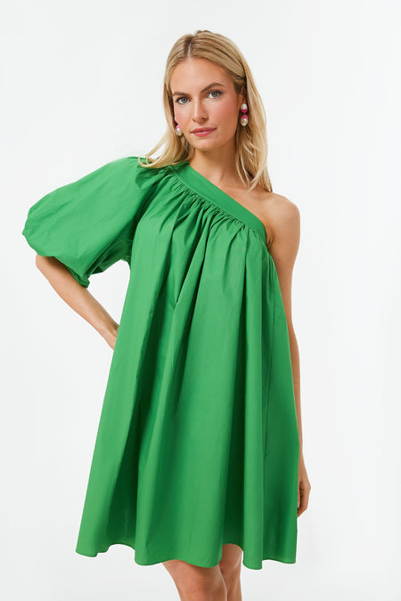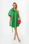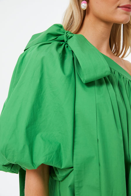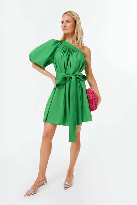 The Meadow One Shoulder Short DressĀ is a statement piece, bold in both color and silhouette. Cut from a crisp cotton poplin, this glamorous mini has an exaggerated puff sleeve, and is gathered at the neckline before falling to an A-line skirt. An optional self-tie belt allows the waist to be cinched, creating an easy to wear style with head-turning potential. Pair with heeled sandals and a mini bag for a fashion-forward look perfect for seaside dinners and other occasions.