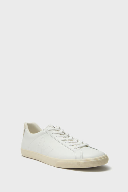 The Mens Extra White Esplar Sneakers are made from a luxe smooth leather in an allover white look that will match everything in your closet. We are wearing them with jeans and a tee or dressing them up with a polo and vest.
