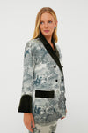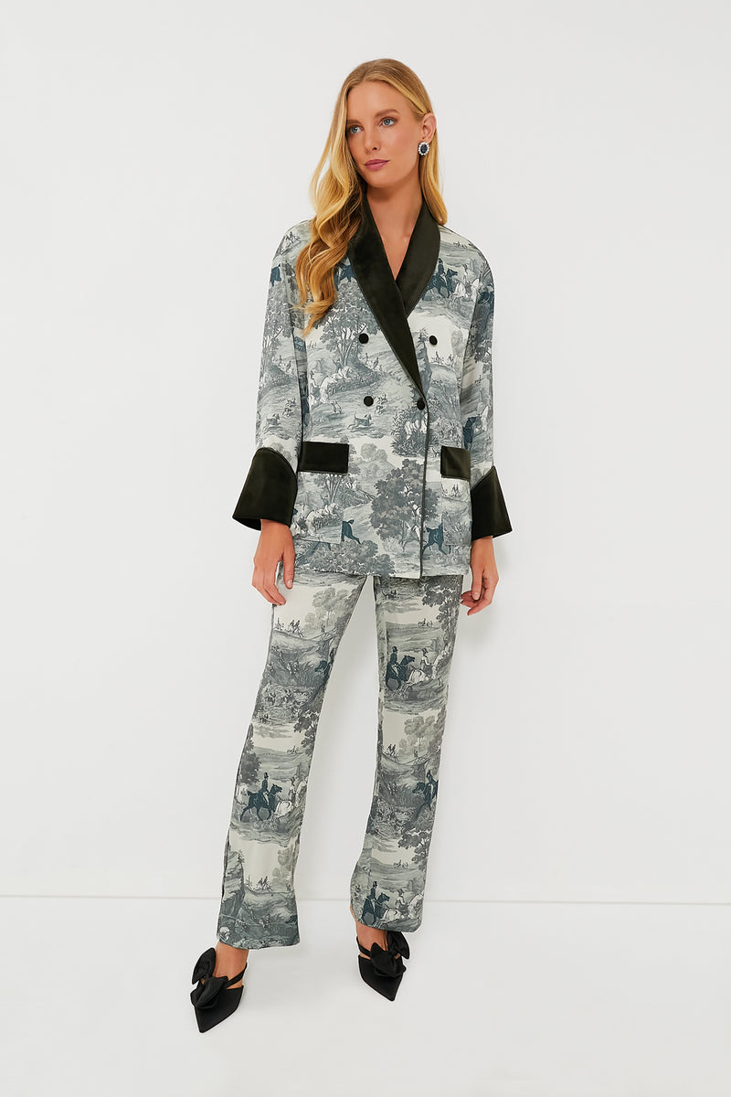Sure to turn heads wherever you go, the Middleburg Toile Smoking Jacket is truly one of a kind. Printed with one of our signature prints for the season and trimmed with velvet in a rich hue, this luxe style features an elegant shawl lapel and patch pockets at the hips to top off an already fabulous silhouette. Go full maximalist and pair it with the matching Solene pants, or style it with a mini skirt for a flirty look that's sure to impress.
