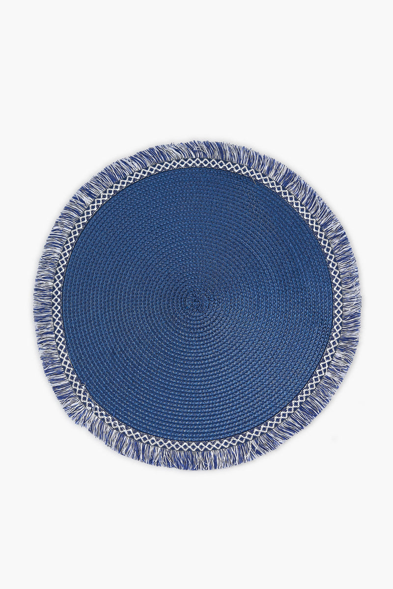 Midnight Blue Round Fringed Placemat