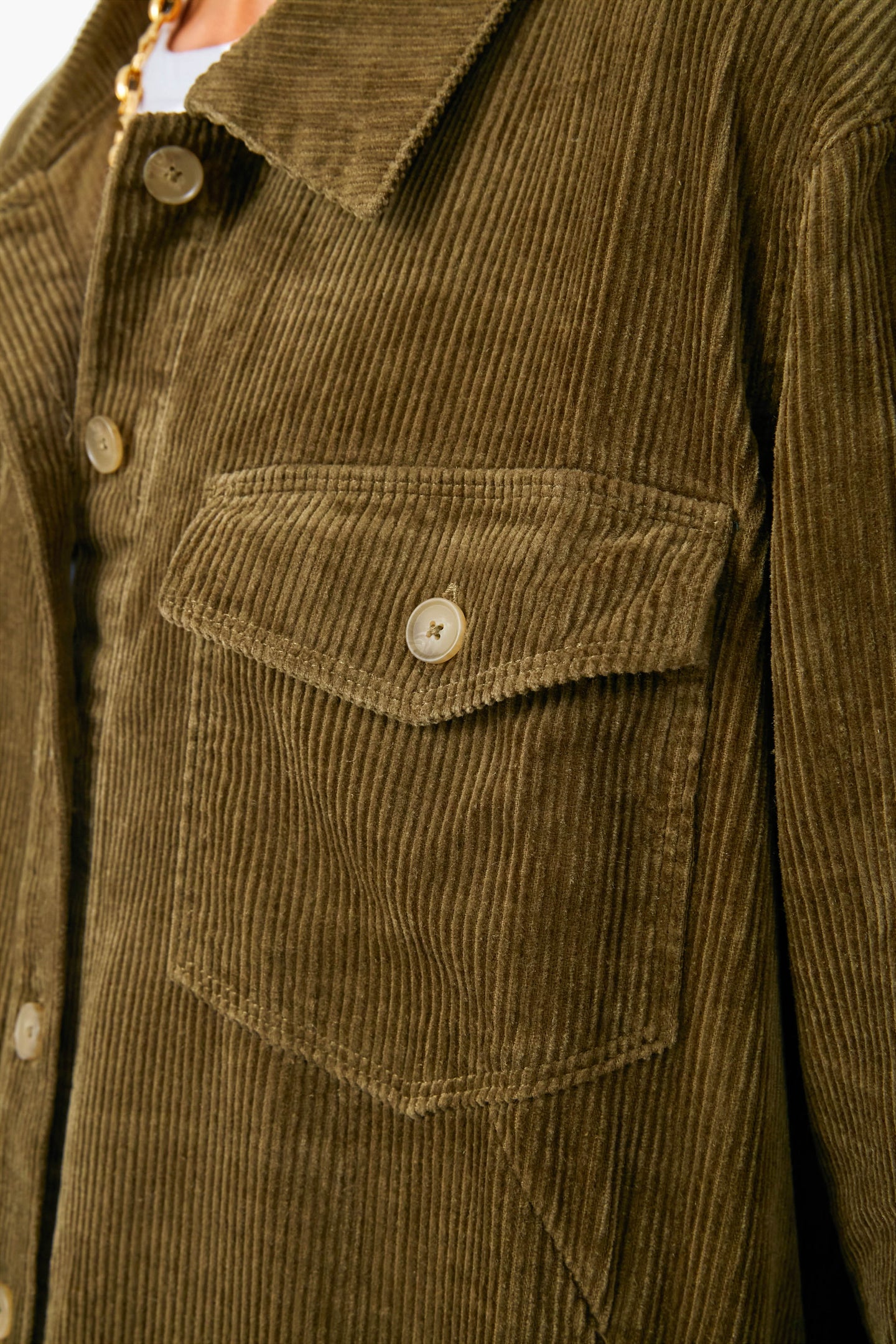 Meet the perfect layering piece for fall, the Military Olive Jemma Overshirt. This menswear-inspired style is complete with side and chest pockets, button cuffs, and a casual fit making for an easy, effortless look. Wear it over a tee or long sleeve paired with your favorite denim and boots for autumn days ahead. Whether you’re pumpkin picking or sipping hotty toddys, you’ll be constantly reaching for this piece.