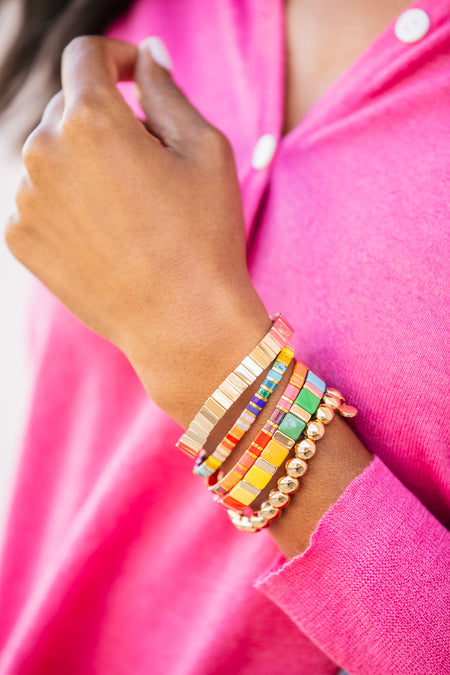 Instantly add a pop of gold to your life with the Mini Gold Bar Bracelet. This playful, stackable, bracelet is the perfect gift.