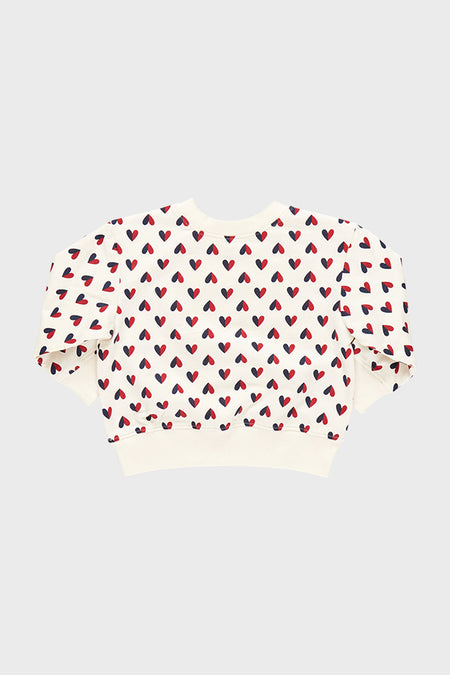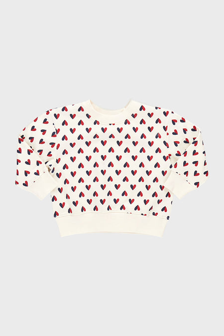 The Mini Half Hearts Sweatshirt features a boxy fit and wide cream cuffs and waistband giving this wear-everywhere piece a stylish flare. Made with the perfect hint of stretch that brings comfort and ease of movement, your little one is sure to feel their best in this crewneck. Style it with matching Mini Half Hearts Leggings for a complete look.