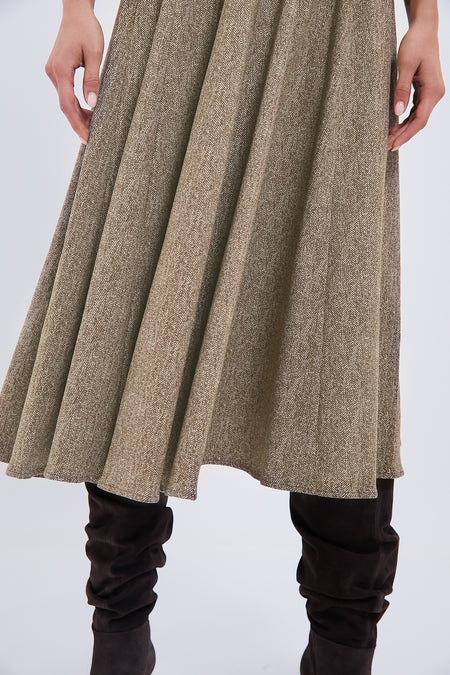 The Wells Dress features a corset-style panel construction to create a flattering, fitted shape through the waist and a full skirt which hits just below the knee. Constructed from a stretch herringbone fabric, this style is perfect for those "in-between" months. Pair with a blazer and boots for cooler days, or with ballet flats for warmer ones!