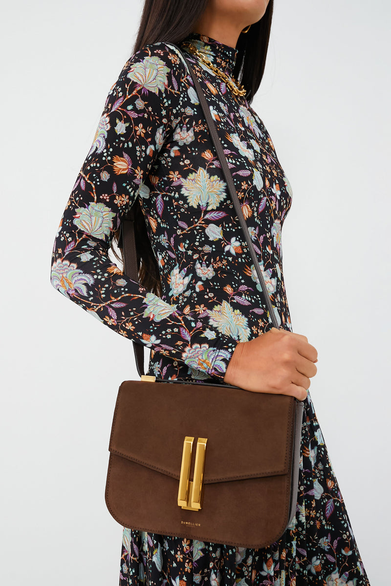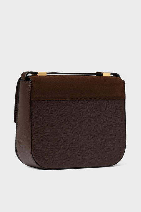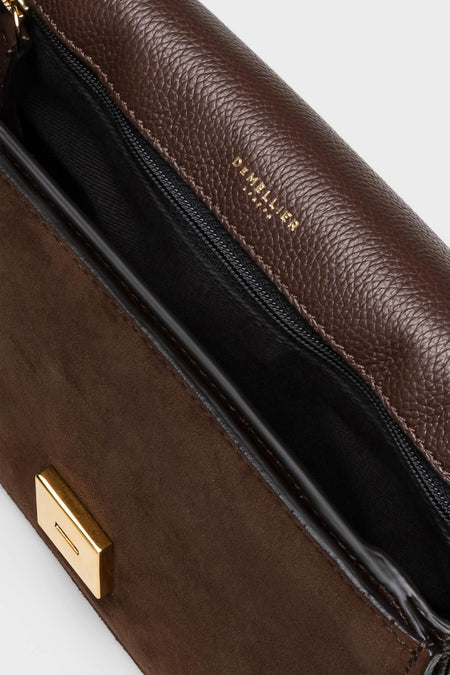 Made from a luxe sueded leather, the Mocha Vancouver Bag presents a sleek, structured design that marries the strength of the arrow-inspired double-bar lock with soft round edges. With a vintage yet contemporary look, it is wonderfully versatile with an adjustable strap that can be worn across the body or over the shoulder. Look chic from desk to errands to drinks and anywhere else the day takes you by pairing it with a dress or chunky knit!