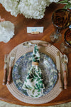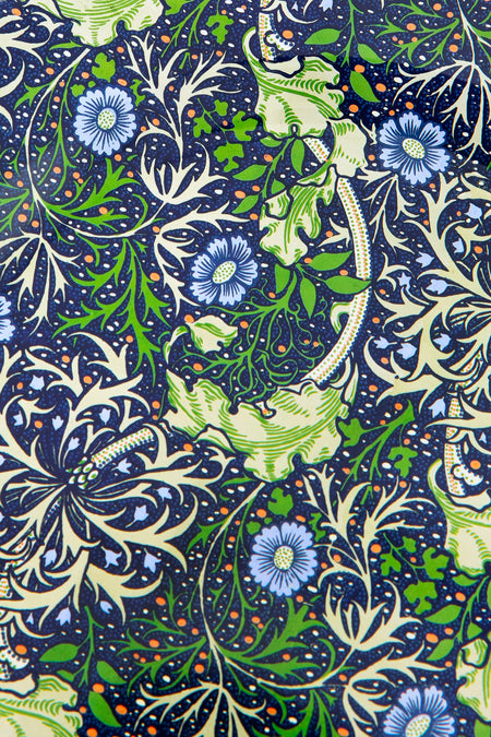 The Morris Seaweed Tin Plate is adorned with green and blue botanical details. This plate makes for a beautiful place setting, or looks chic mounted on a wall for a gallery collection!