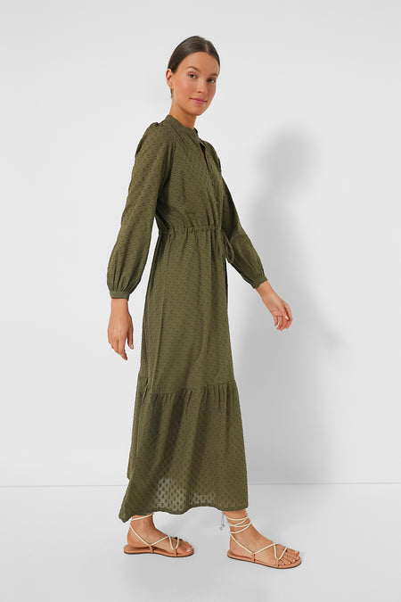 The Moss Swiss Dot Frances Dress 3 is cut from light and crisp organic cotton that's perfect for all seasons. We can't get over this silhouette — it seems simple and straightforward but has all kinds of special details that give it a stylish boost, like a band collar, slightly puffed shoulders, a drawstring waist, and a ruffled hem. Go for classic boho-chic by pairing it with booties and gold jewelry, or up the functionality for everyday wear by adding a tote and white sneakers.