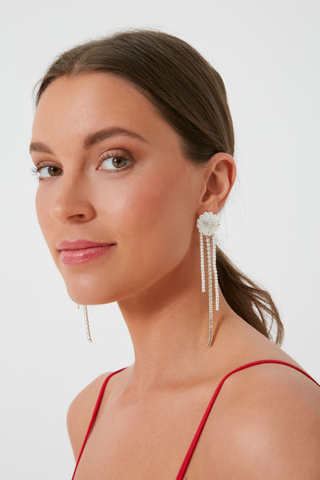 Extra twinkly and ready to sway while you dance the night away, the Mother of Pearl Embellished Tassels are the most elegant drop silhouette! With a floral stud and hanging crystal strands that frame the face, these pair beautifully with elevated event looks for all of your glam galas and other occasions ahead!