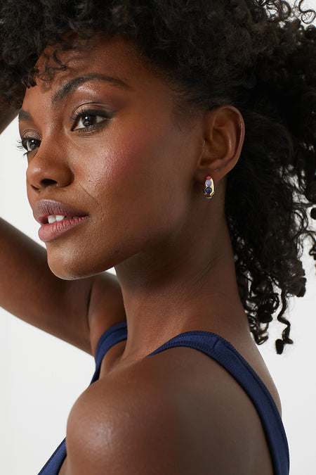 Bring some bling to your everyday with the Multi Didi Hoops. Tiny but mighty, this gleaming gold plated hoops are embellished by multi-colored stones reminiscent of all the colors of vases and pottery of Marrakesh. Pair these not-your-average hoops with a blouse and denim for a casual look, or wear with a maxi dress and espadrilles for an elevated dinner!