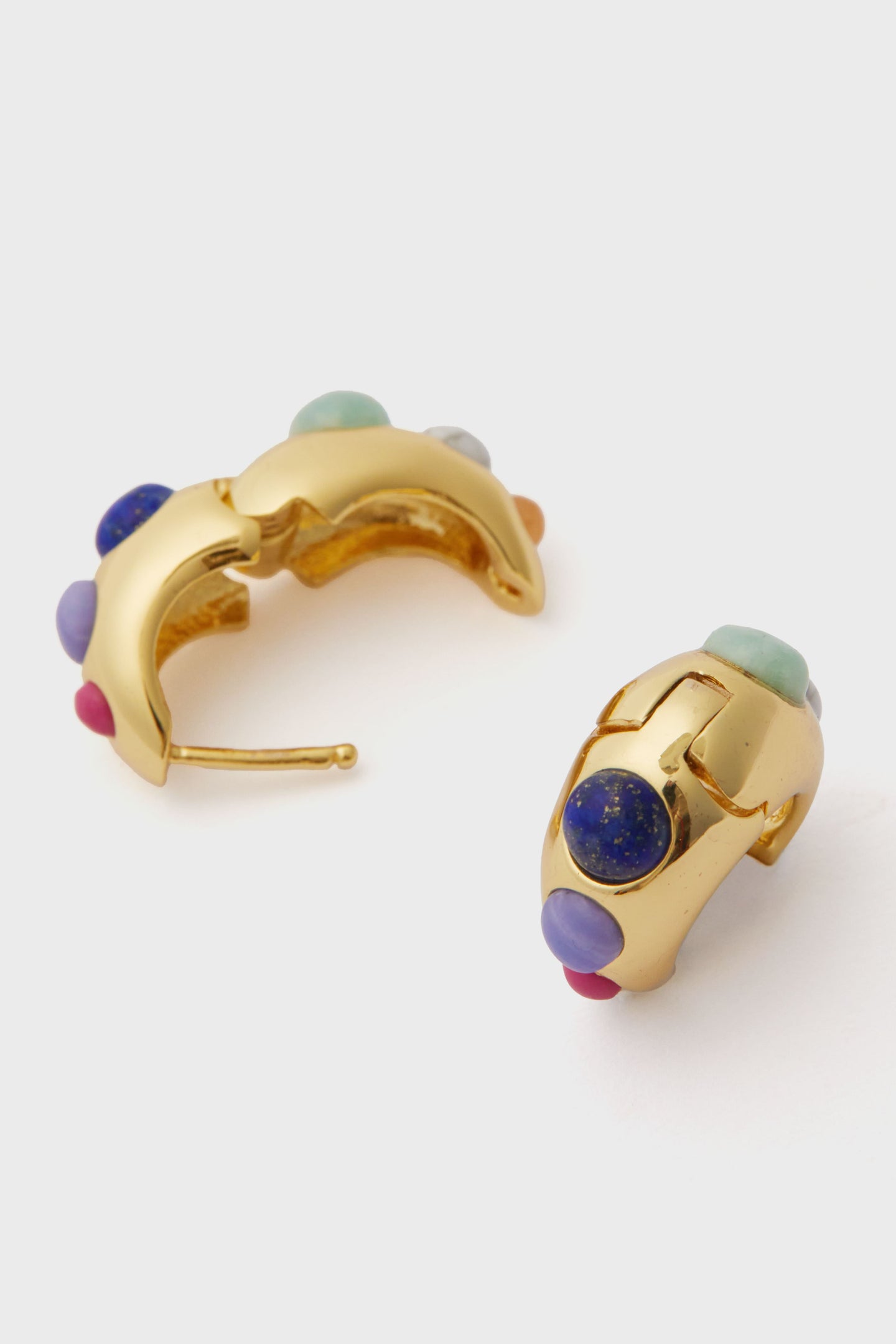 - Material: 14k Gold Plated Brass, Semi Precious Stones (Pink Agate, Blue Lace Agate, Lapis, Orange Aventurine, Howlite, Amazonite), Stainless Steel (post)
