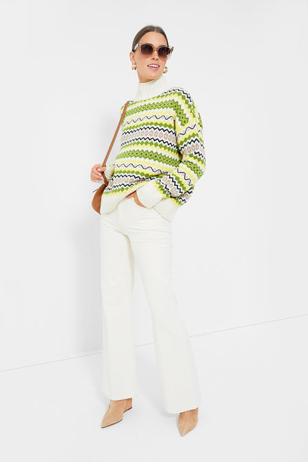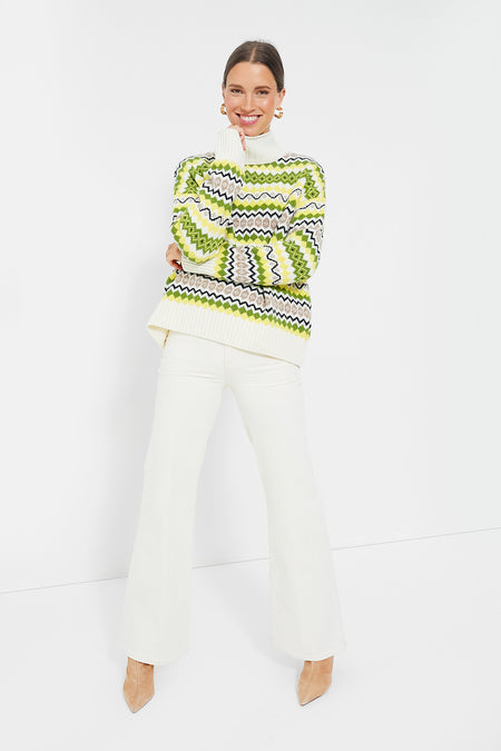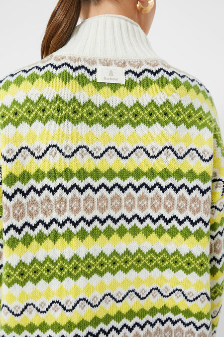 For those looking for a bit of color to brighten grey days, the Multi Holkham Knit has all the sassy and spunky energy you could ever want. This cozy turtleneck features dropped shoulders for a relaxed feel, ribbed cuffs, and a bold Fair Isle motif in shades of lemon yellow and chartreuse that will have you looking your best. Style with denim and boots to watch the leaves change color or chill by the fire, and layer under your go-to jacket for outdoor adventures this season!