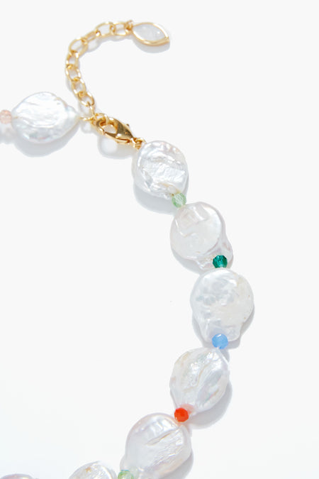Refined yet playful, the Multi Ivy Beaded Necklace is full of whimsy and classic features. Reminiscent of collected sea glass and bursting with nostalgia, this stunner features organic freshwater pearls interposed with rainbow beads that are stranded together. Pack it with you on your next getaway with your go-to coverup for a beach to bar look that's sure to shine!