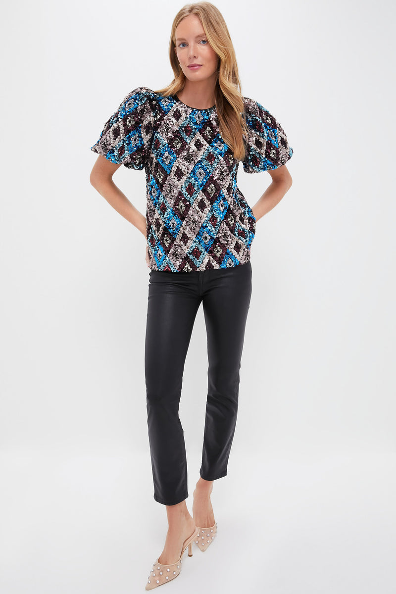The Multi Sequin Jada Blouse is everything you want in a head-turning piece. The dramatic puff sleeves will help you show all your best moves on the dance floor and the fully lined inner bustier will keep you feeling secure. We are styling this with a skirt and heels for date nights, or with denim and ballet flats to spice up an everyday look.