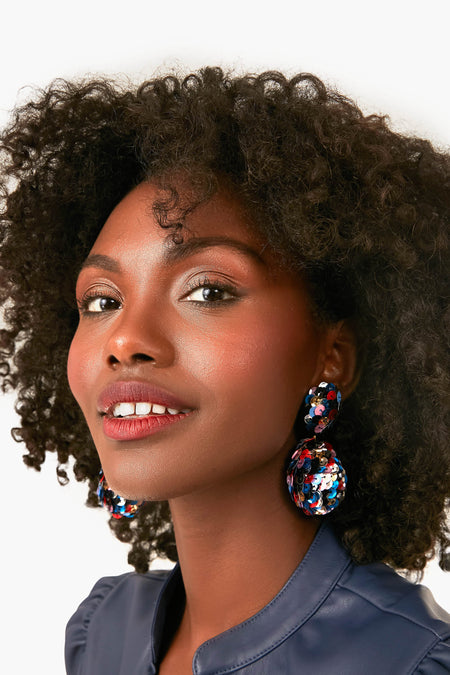 Add a little sparkle to your outfit with the Sequin Sandras. A lightweight version of the original style, these colorful, shimmer statement earrings will take your outfit to the next level without sacrificing your ears in the process!