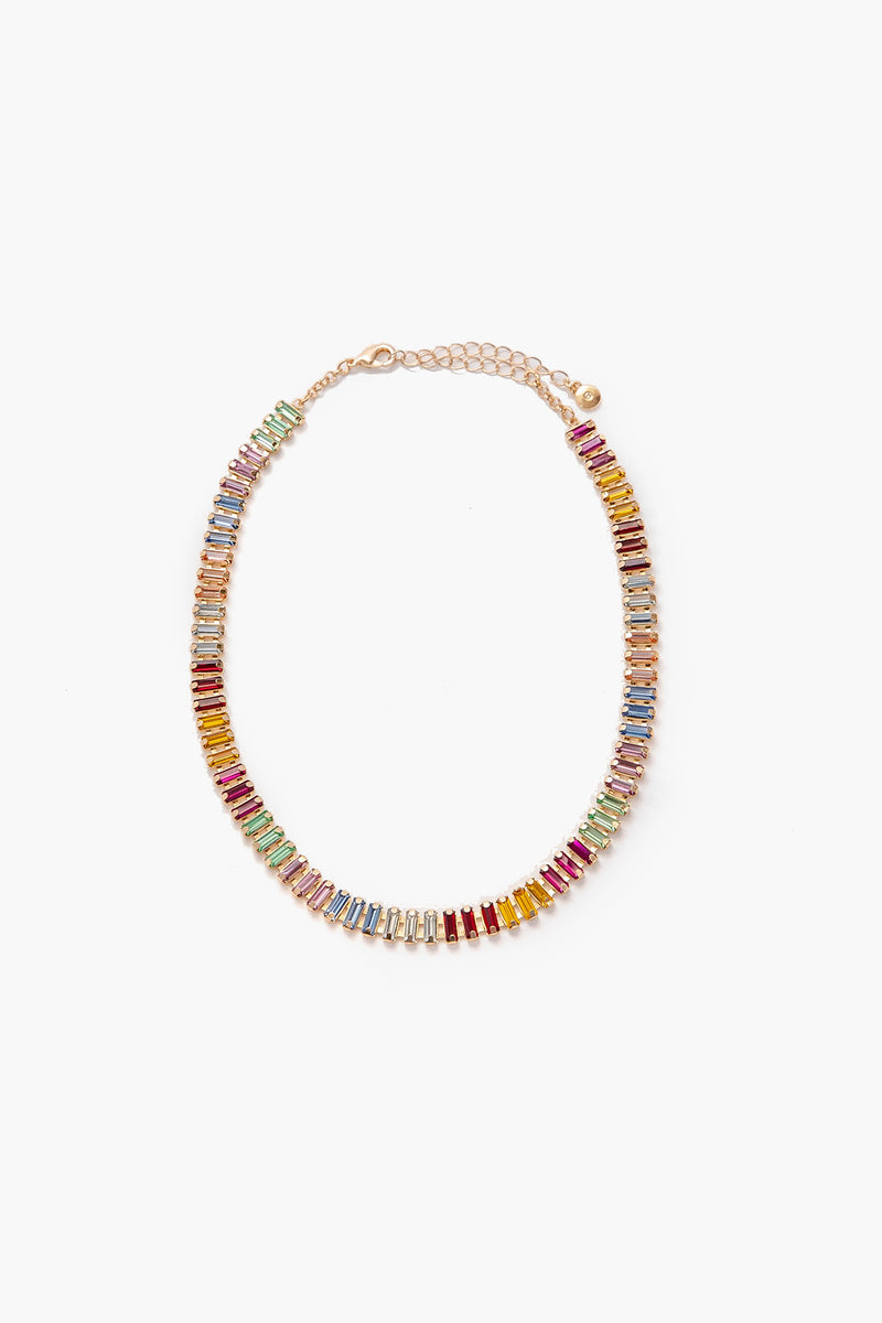 The Shay necklace offers a fun pop to any look. Made from alloy and resin stones, this adjustable choker necklace pairs nicely with colorful sweaters to brighten your wardrobe this season.