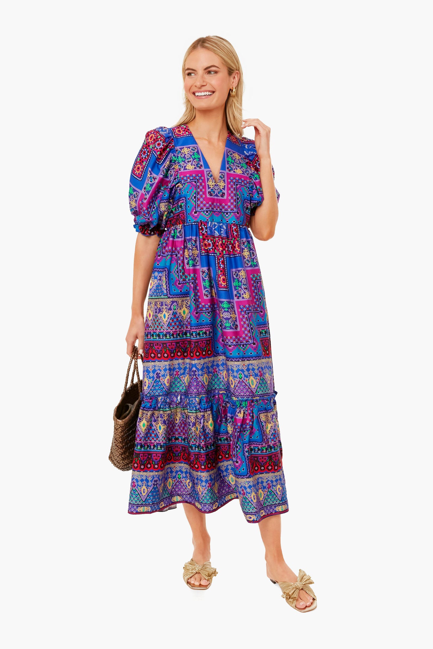 The Multi Talavera Palmer Dress is a must-have! This lightweight cotton-sateen number features a colorful mixed-print motif, elbow-length puff sleeves, and a tiered ruffle silhouette to create a flattering feminine style. Dress up with heels and statement earrings or dress down with sandals and gold jewelry for date night.