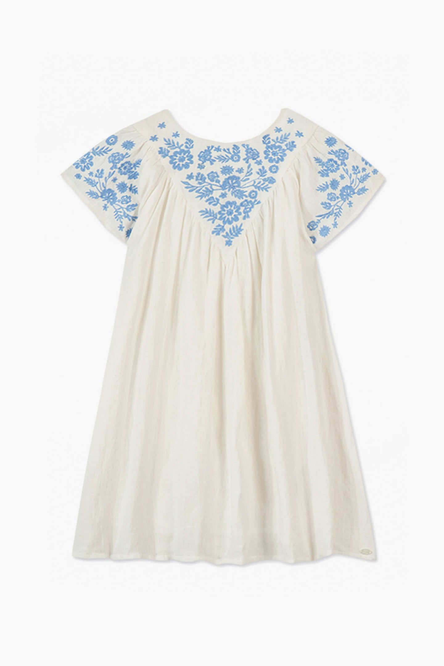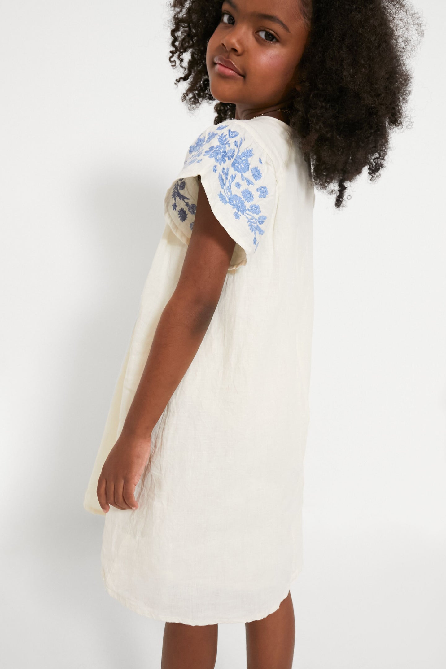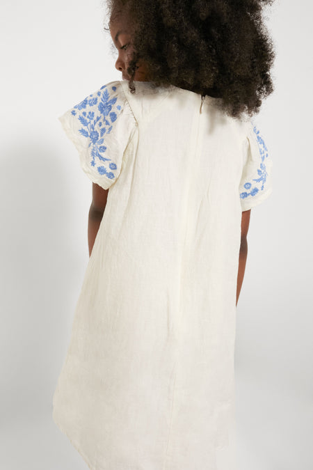 Delicate and light, the Nacre Dress is a wind of freshness for this summer. Our favorite features include the adorable blue embroidery and ruddy sleeves that bring an additional touch of refinement. With its material in 100% Linen, your little one girl will be comfortable and ready for a day full of fun. Ideal for everyday life: outings by the beach, summer evenings and meetings with friends.