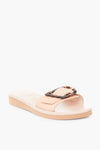 The Natural Aglai Sandals are made from high-shine leather with an oversized wing buckle. One simple strap across the foot secures the shoe, making them an easy addition to any wardrobe. Perfect for the pool or the farmer’s market, these pair easily with everything from dresses to swimwear.