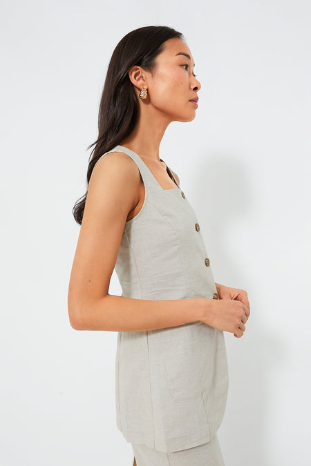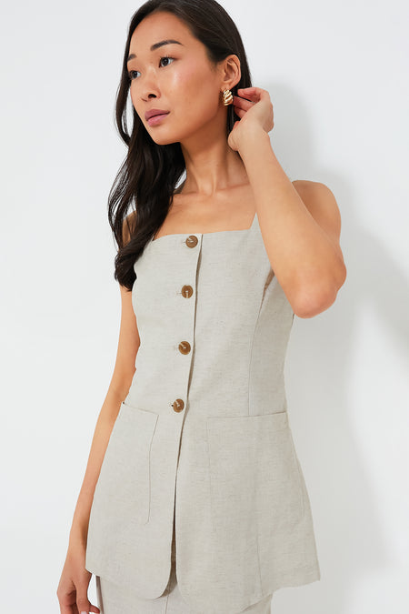 Sophisticated meets trendy in the Natural Bottom Front Top. This style boasts a square neckline, fit and flare silhouette, and button front closure. The adjustable back clasp allows for perfect fit, while the oversized front patch pockets add an elevated touch. Pair with the matching Natural Midi Skirt and heels or flats for a chic monochromatic look.