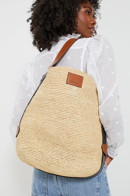 Classic, modern, and functional, the Natural Cognac Bayia Bag is a favorite for everyday use. With a leather top handle, drawstring closure, and flexible woven body, this is truly a "hold-all" style that can be worn for a variety of occasions, from the beaches to the bars!