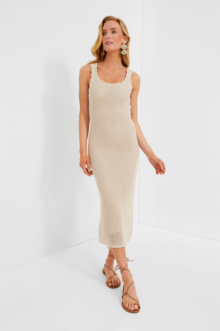 You'll love the retro vibe of this Natural Ibiza Sweater Dress. Crafted from lightweight cotton crochet knit, this midi is made to hug your curves in all the right ways. Finished with a flattering scoop neckline and a delicate lace trim, just add sandals and some statement jewelry for an effortlessly cool look perfect for anything from beach days to happy hour.