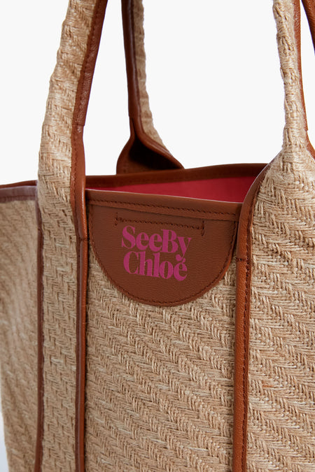 If you love the Laetizia style but want something bigger than the mini, we love the Natural Jute and Leather Tote. A classic silhouette that will never go out of style, this bag with top handles, ample room to hold your necessities, and a reinforced flat bottom is a perfect everyday go-to, while the woven material gives a fresh seasonal update. Add in cognac cowhide leather trim and a contrasting logo graphic and you have a fabulous purse on your hands. Pair with a breezy caftan while on a warm-weather getaway, or try it with light denim for happy hour!