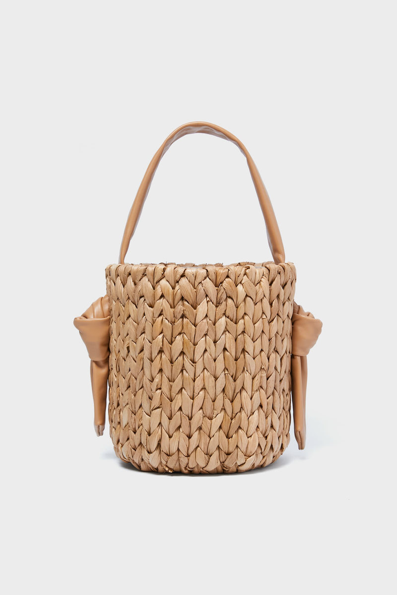 - Material: Handwoven cornhusk, Calfskin leather (handles), Cotton (lining)