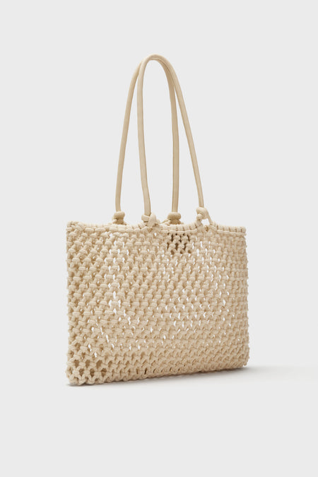 The Natural Sandy Bag is the perfect warm weather tote. With a cotton rope body and leather straps, fill this tote with your beach essentials, or farmers market finds, free of sand and stress, and you are ready to take on the day!