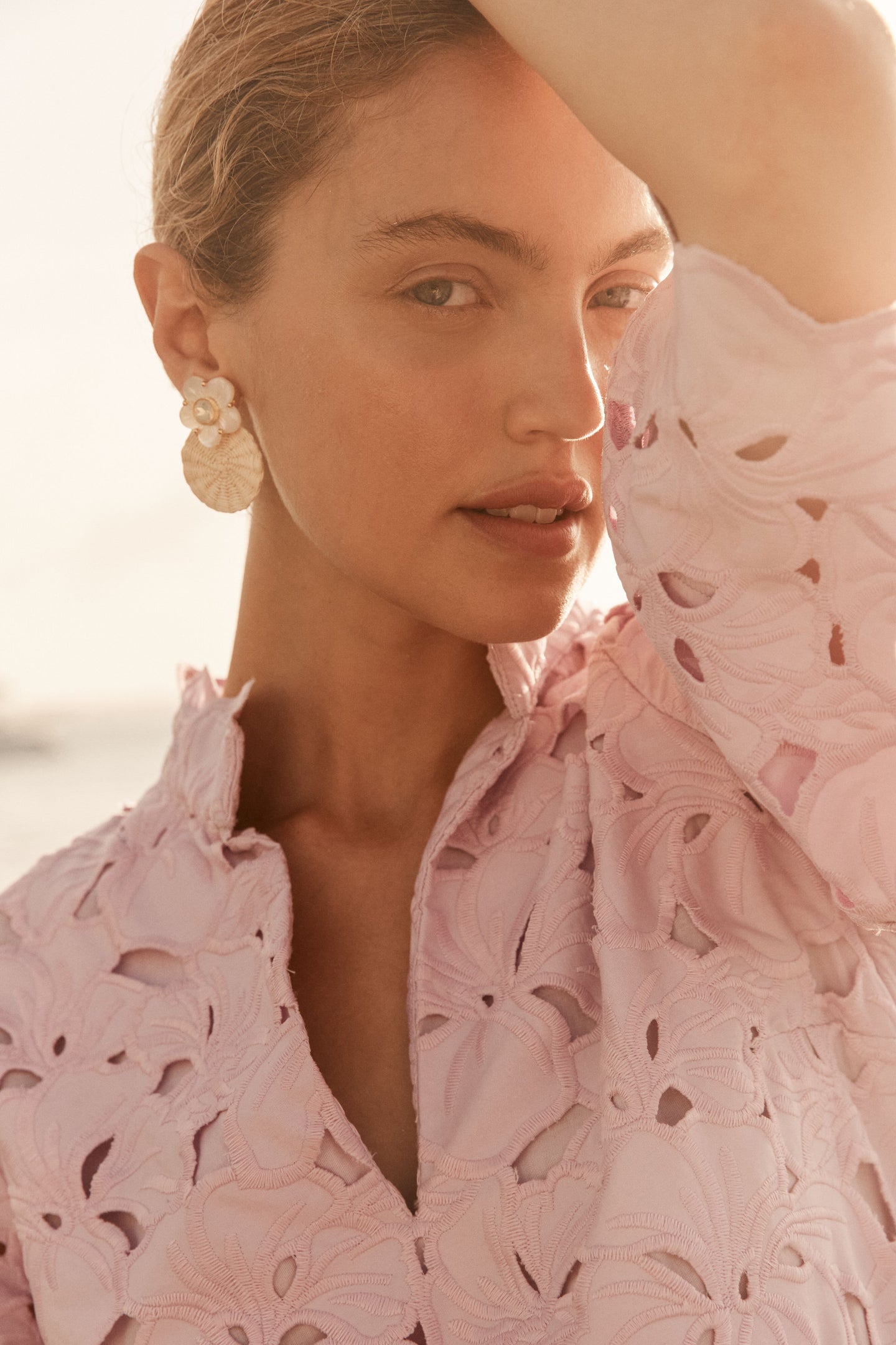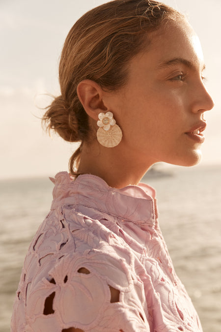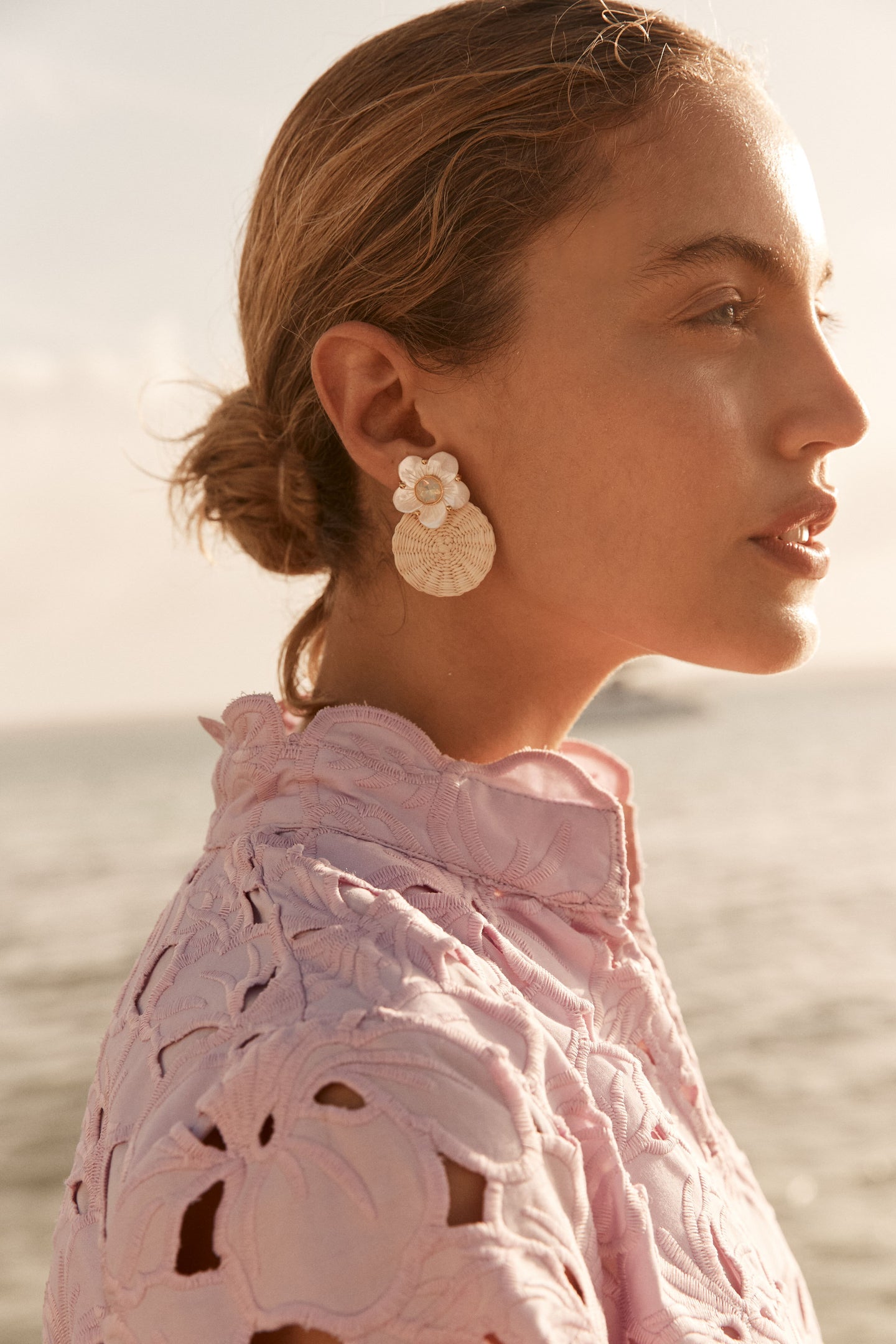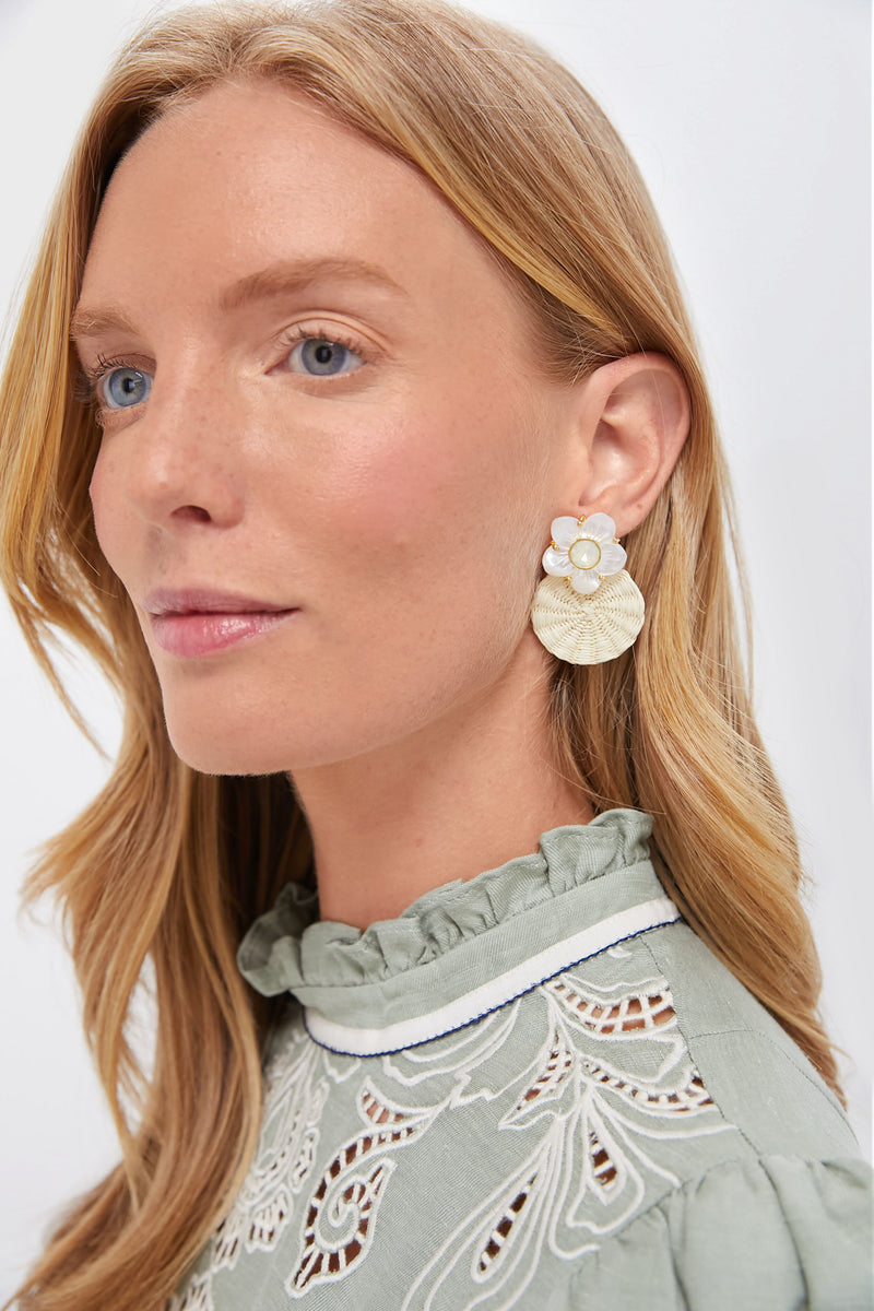 The Natural Shell Garden Studs can dress up any outfit.With a flower shaped stud that connects to a bright iraca palm hoop dangle, these are a special piece that will complete any jewelry collection and stand out against the crowd. Pair with anything from a caftan to a blouse and denim for days when you want a fresh accessory look.