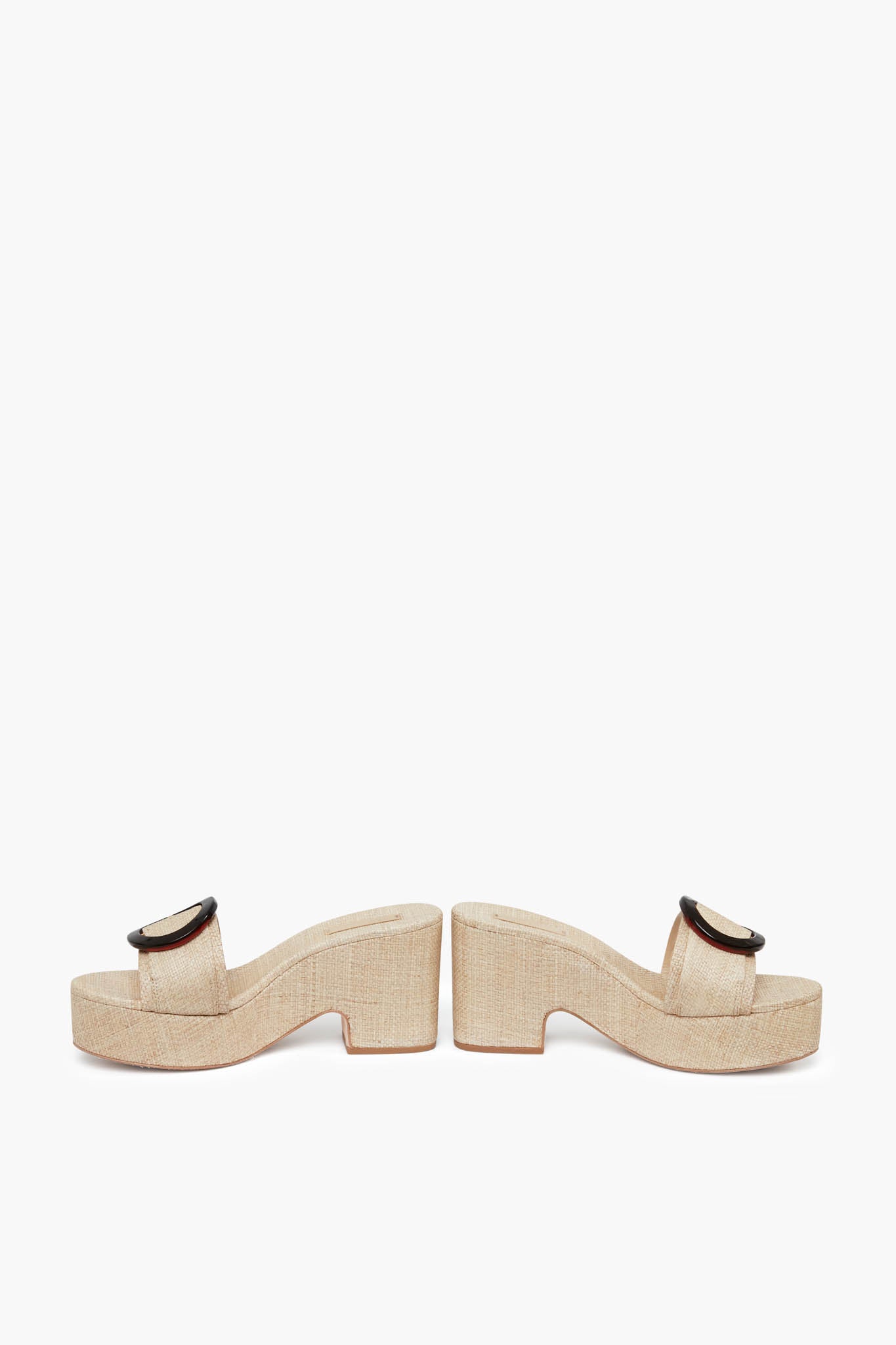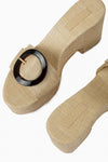 - Upper: 100% Raffia, Sole: 100% Rubber, Heel: 100% Wood wrapped in raffia