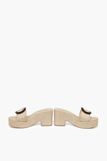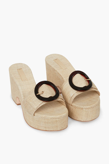 The Natural Cleia Platform Sandal is a neutral style that goes with anything. Made from raffia with a chic tortoise buckle detail, these shoes will make any outfit vacation-ready. Pair with a colorful set and sunglasses for a fun and chic look!