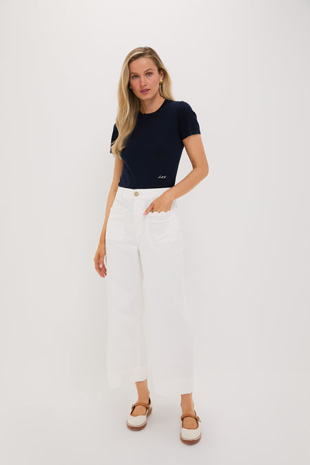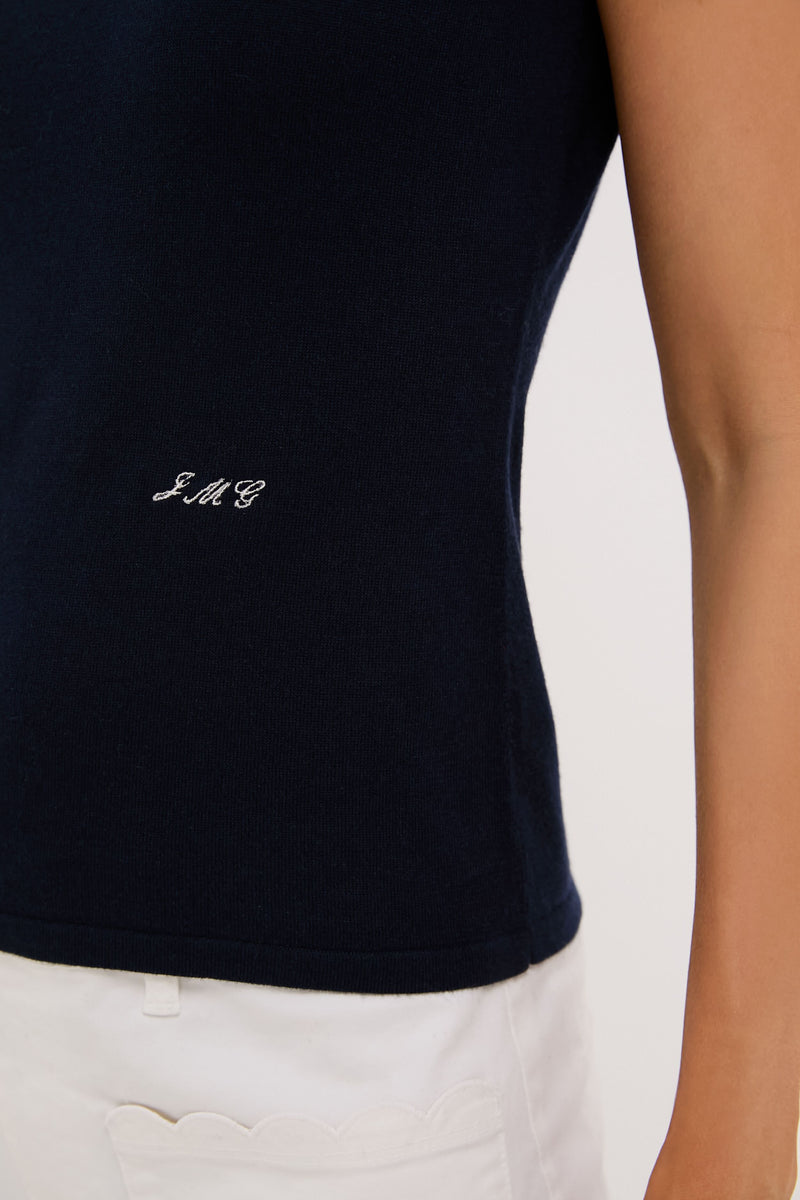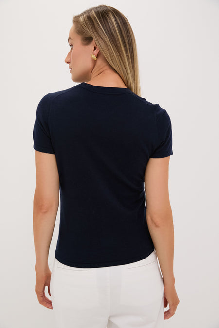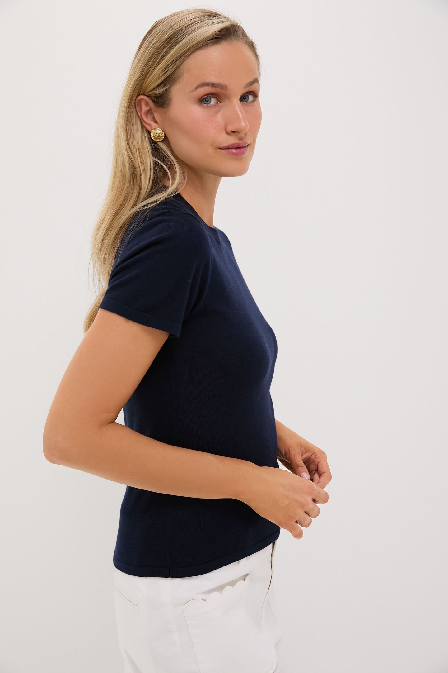 Perfect for layering or wearing on its own, we love the Navy Katie Tee for its elevated take on a classic silhouette. Spun from a luxurious cashmere silk blend, it features a crew neckline and short sleeveless, with a flattering slim fit. Pair with a silky skirt and heels for date night, or under a blazer with wide leg pants for the office.
