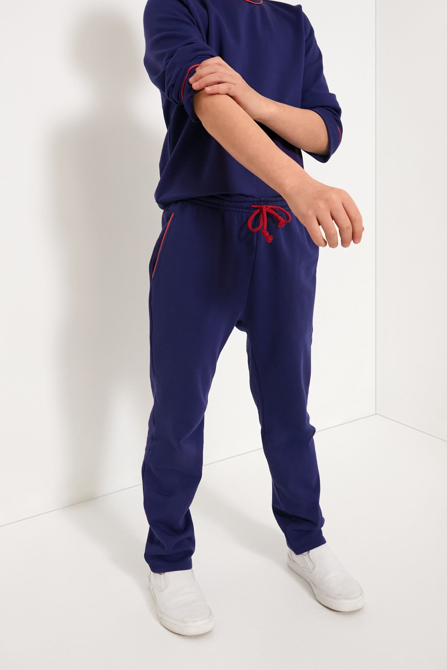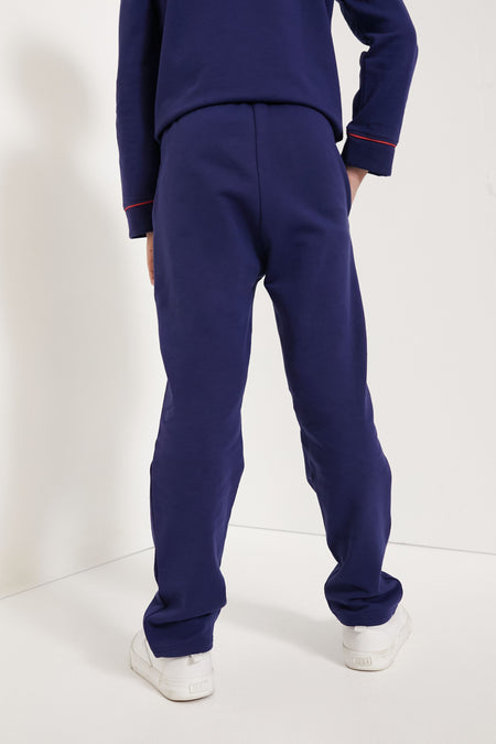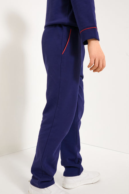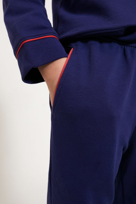 The Navy Chris Jogger is a great style staple to have in your kiddo's closet. Boasting the brand’s signature style with contrasting piping around the front pockets, these bottoms are made with french terry on the inside and jersey on the outside making it perfect to play in and stylish enough to be worn around town. Whether pair it with a tee or with a matching Navy Remy Sweatshirt, this is sure to become your little one’s favorite.