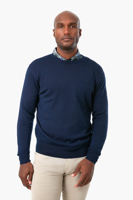 Strike a sophisticated layered look in this stylishly versatile Navy Crown Soft Crew sweater. Crafted from a luxurious merino wool-silk blend, this top offers a luxuriously soft feel and enhanced shape retention. Finished with rib-knit cuffs and hem in a classic fit, this piece is the ultimate fall to winter classic.