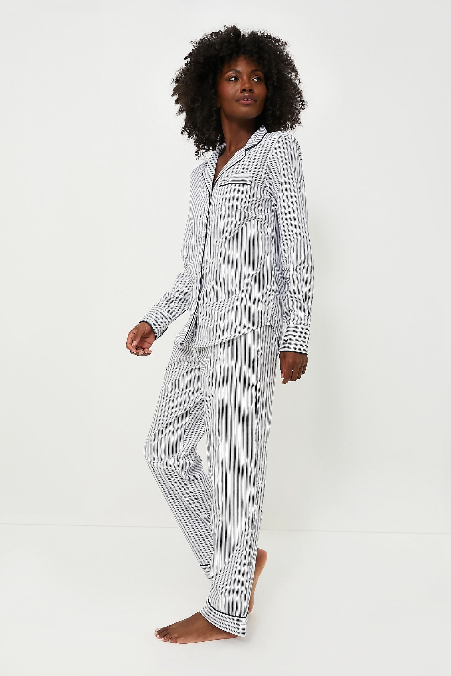 The Navy French Ticking Pajama Set is made from the finest quality cotton in a classic print. Yarn-dyed to prevent fading and brushed for added softness, we love how these get cozier with every wash. Add slippers and a robe for relaxing mornings spent with a cup of coffee in hand!