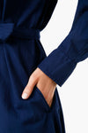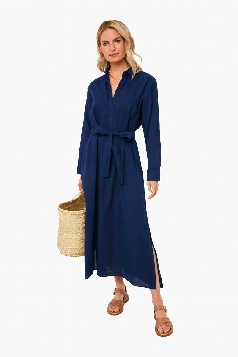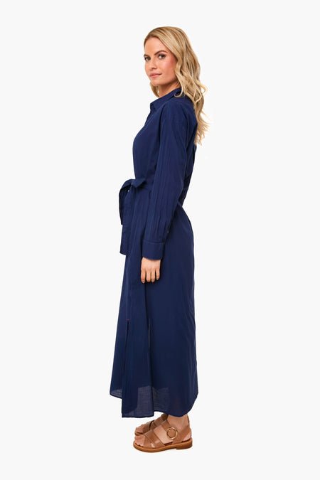 The Navy Hope Dress has a collared neckline, a button front placket, optional self-tie belt, side slits, and easy fit. Made from soft cotton gauze, this classic style is perfect for beach days, brunches, or lounging around. Pair with sandals and gold jewelry for a casual yet chic look.