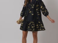 A feminine silhouette filled with movement and grace, the Navy Jasmine Vine Palmerston Dress is the dress of our dreams. A ruffled collar and long sleeves play for a sophisticated feel while the golden florals are perfect for year-round styling. Pair with heels and gold earrings for an upcoming trip, shower, or brunch!