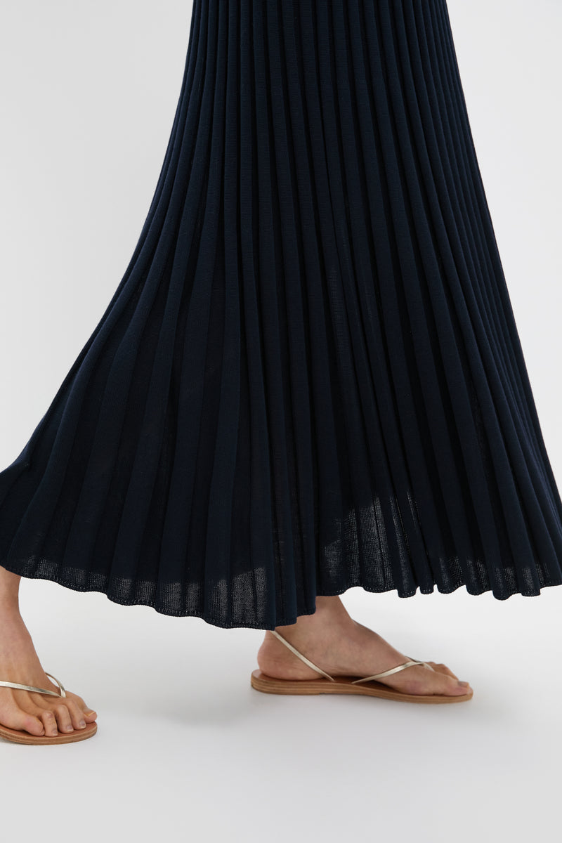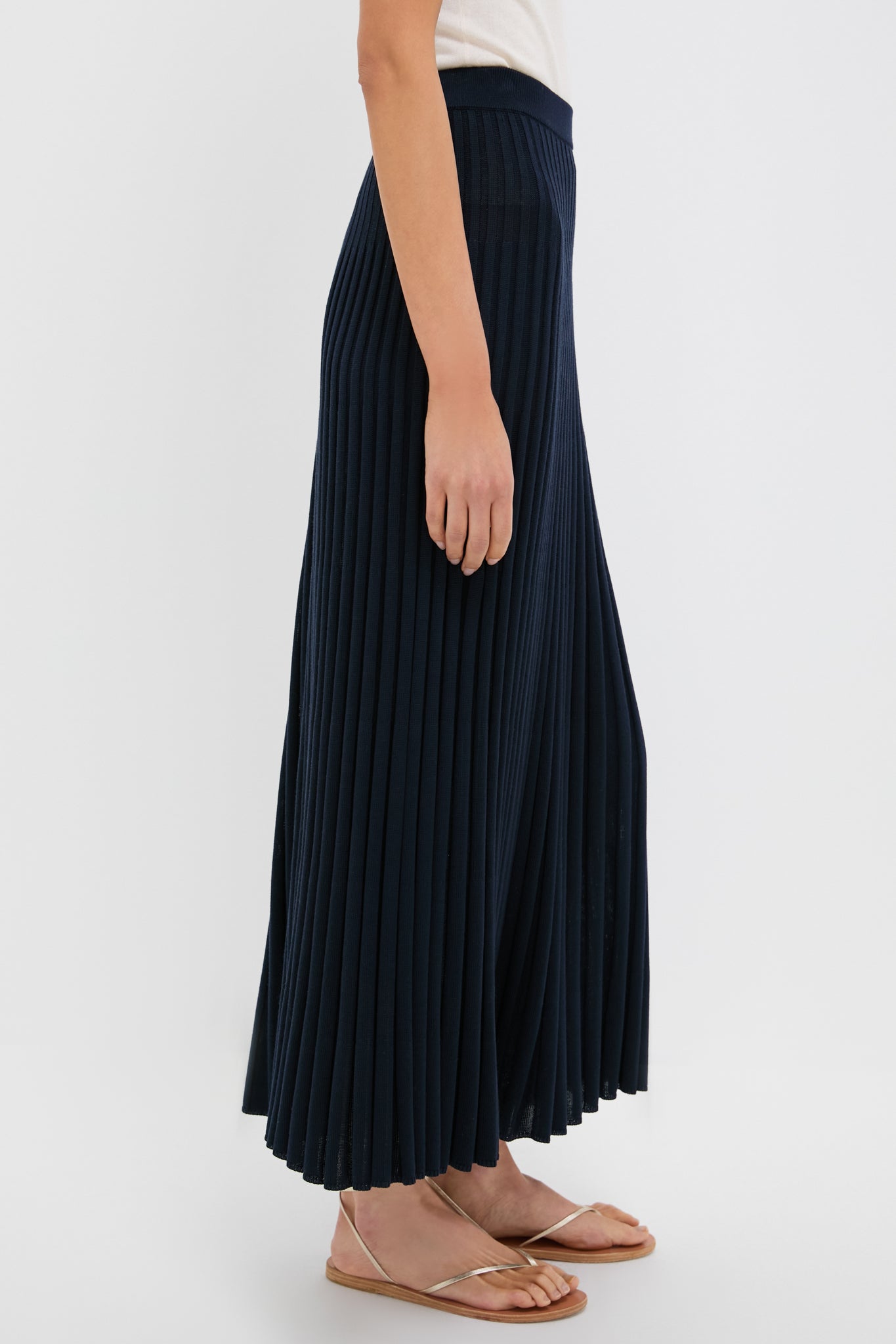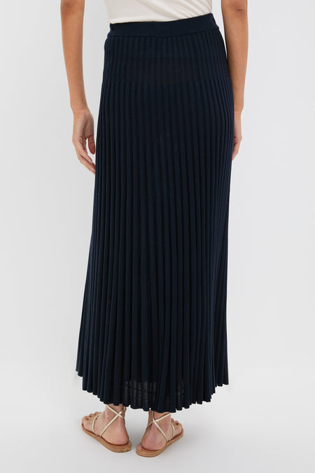 Meet the Navy Knit Kenley Skirt, your new go-to for understated elegance. With its lightweight knit fabric and fluid drape, this piece is as comfortable as it is sophisticated. Dress it up with heels and a silk blouse for dinner dates, or keep it casual with a tucked-in tee and sneakers for an effortlessly polished daytime look.