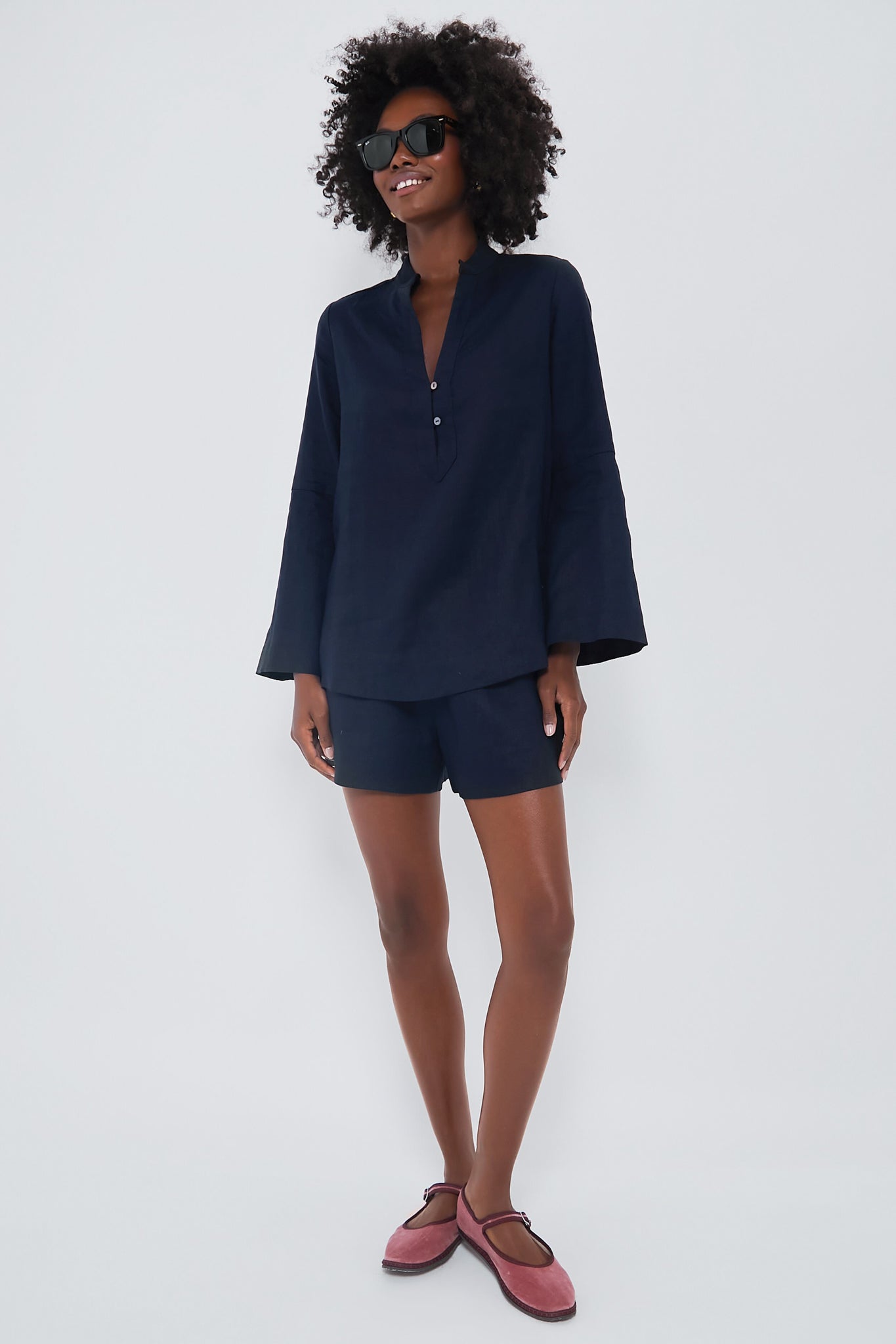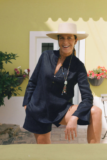 “This is ultimately the most comfortable thing anyone could own for their resort wardrobe,” says India, and she’s not exaggerating. These breezy linen shorts are the pull-on-and-go option you want on vacation—wear them with the matching tunic top or throw them over a bathing suit for coverage by the pool. Trust us: You want these in your suitcase wherever your adventures take you.