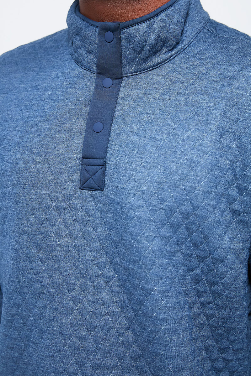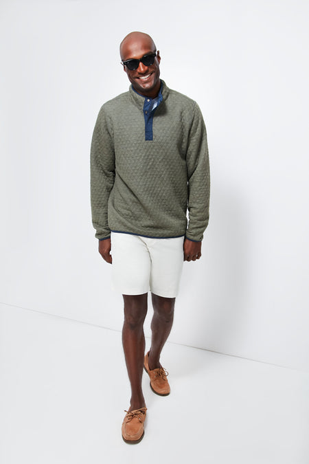 The Navy Olive Heather Corbet Reversible Pullover is the ultimate cozy layer. In a reversible style with two color options, this diamond quilted sweatshirt is a favorite of ours. A stand collar keeps out the cold wind, and a split hem elevates this comfy piece. Toss this on to grab a quick latte with a friend, for a cold-weather run, or to sit by the fire and relax.