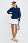 Navy Puff Sleeve Quilted Stretch Campbell Pullover