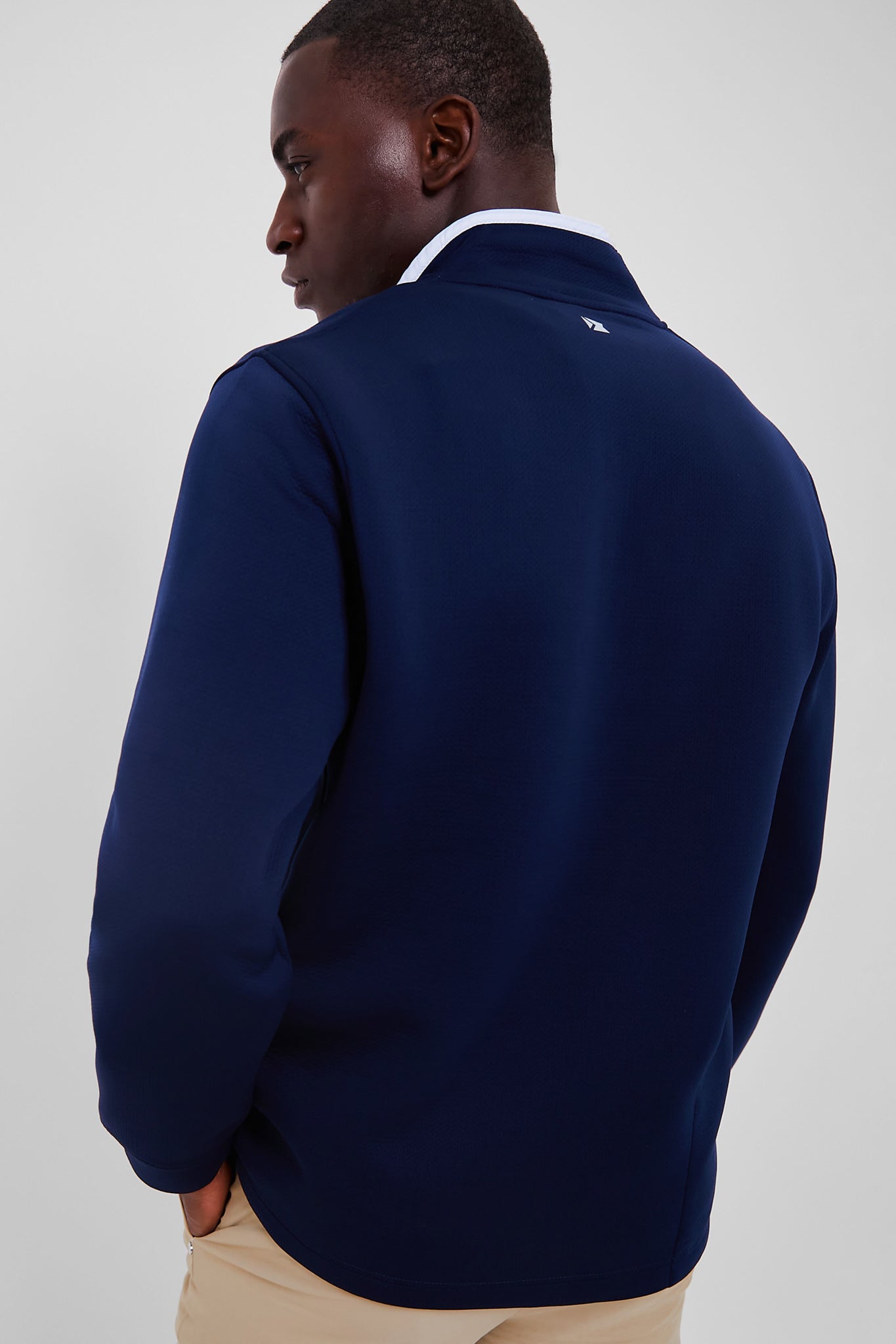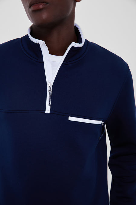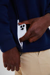 The Navy Quartermaster Outer Fleece is knitted with a special 2-layer construction that creates an abrasion-resistant, anti-pilling face and a lofty interior. This outerwear boasts a smooth, resilient surface that wicks, breathes, and maintains comfort mile after grinding mile. Pair with shorts for a day of adventure, or with khakis for dinner time.