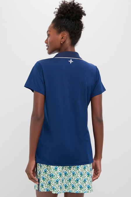 Navy and White Short Sleeve Performance Jersey Caroline Polo