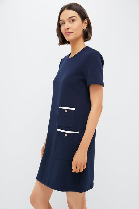 The Francoise Dress is the ultimate desk-to-drinks style that can be worn for endless occasions. With a soft cotton-blend fabric and front pockets with gold button detailing, this easy pullover mini is as chic as it is comfortable. Pair with ballet flats or heels and accessorize with gold!