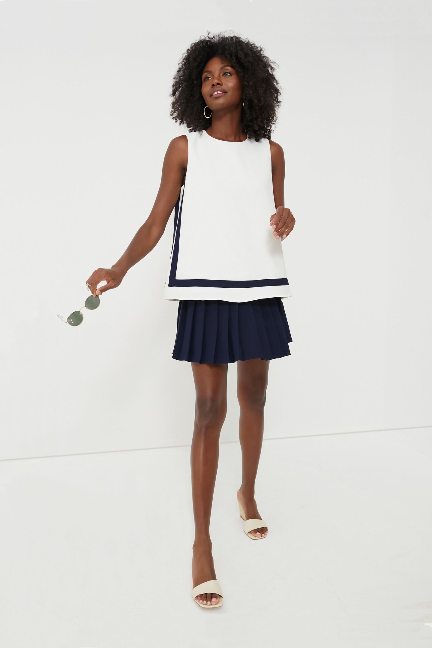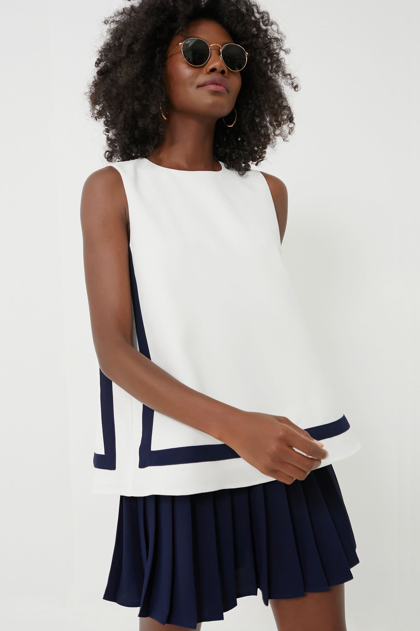 The classic Navy Stripe Tyler Top is designed with all of your favorite details in mind - a lightweight bodice allowing for movement throughout your busy day, a back zipper for styling ease, and delicate sleeveless arms to show off your shoulders all season long. A founder favorite, this piece transitions effortlessly from day to night. Pair with wide leg denim for elevated weekend-wear or with your favorite mini skirt for added flair!